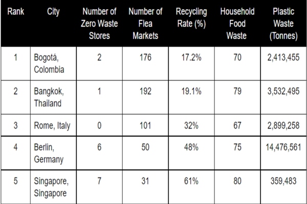 Charity fundraising website Savoo ranked Bogota first and Bangkok second as the top zero-waste city based its analysis on a number of criteria like how many zero-waste stores and flea markets are available in a city, as well as recycling rates and plastic bag regulations.